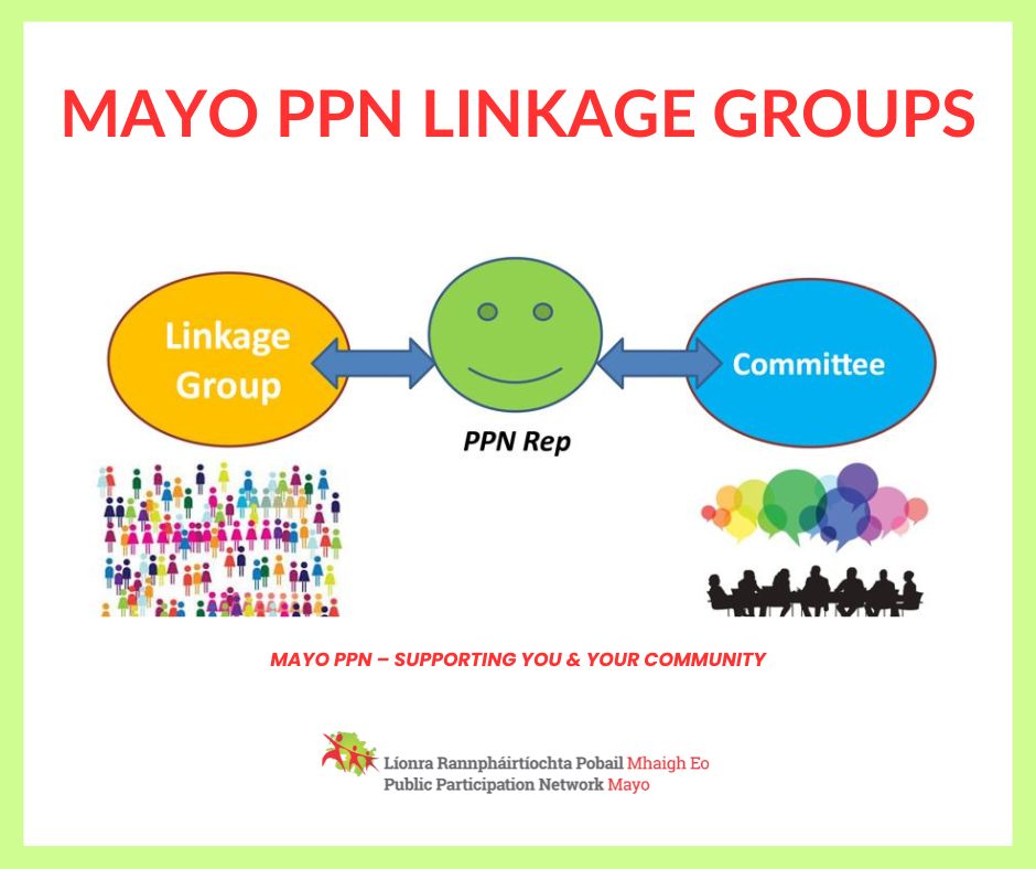 Linkage Groups are the way that Mayo PPN members have input into policy in their area of operation and operate by bringing together member organisations with a common interest to discuss their diverse views and interests in a specific policy area.