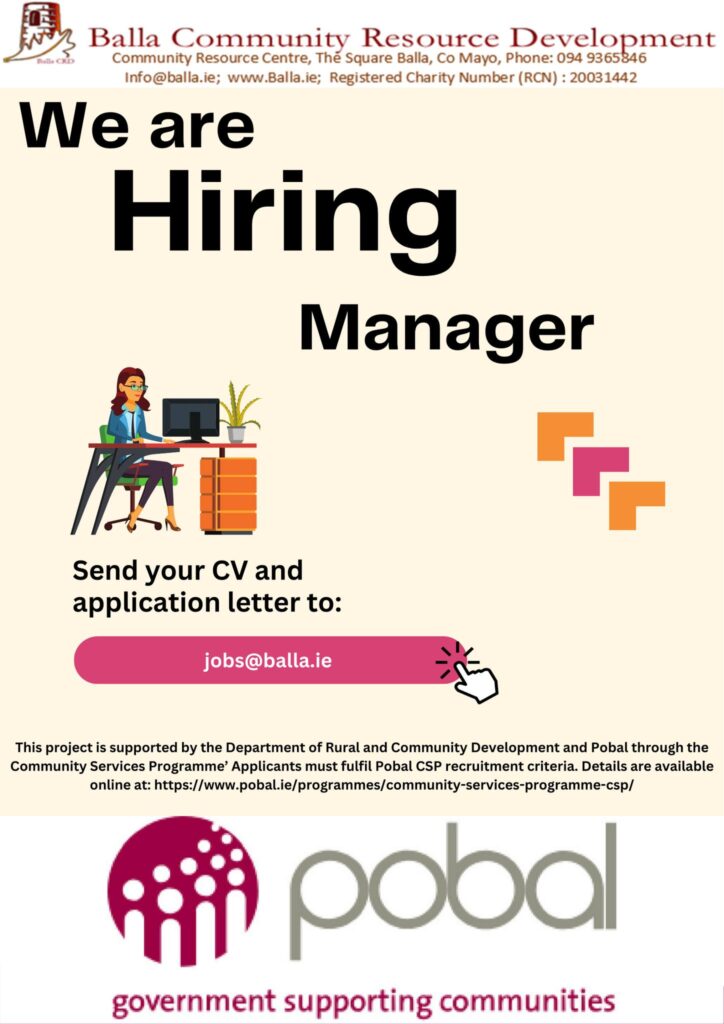 Balla Community Centre is currently recruiting a Manager to lead the day-to-day operation and development of the Centre. This is a fantastic opportunity for a motivated, organised, and community-focused person…
