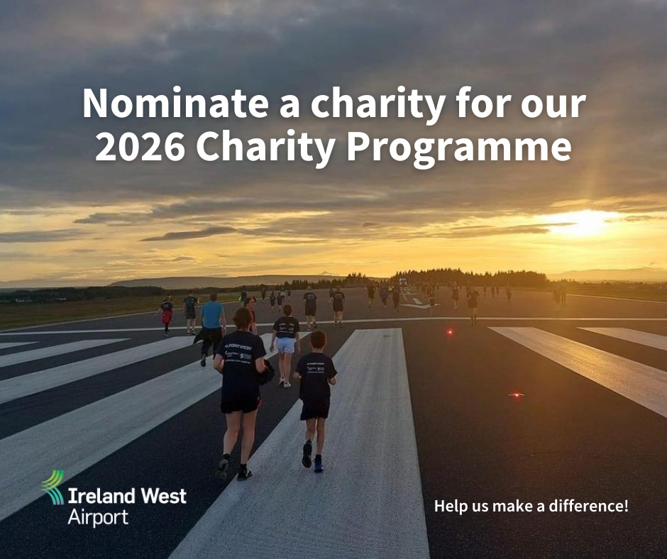Ireland West Airport are seeking nominations for their 2026 Charity Partners Ireland West Aiport’s Charity of the Year programme supports several charities each year through their fundraising events. In 2025,…
